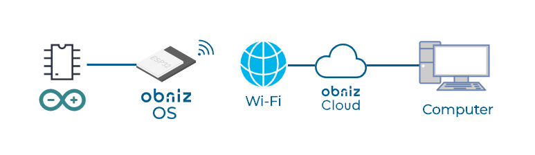 To connect them, you need to connect the obniz device to the arduino serial The arduino's serial