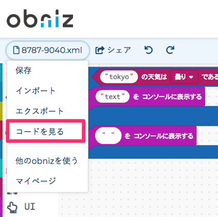 The obniz block program is actually converted to HTML/javascript and executed.