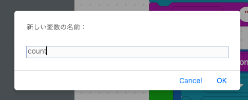 In the block that is executed when the button is pressed, there is a block called "Increase or decrease the variable count 1", so I put this. Then, it looks like this.