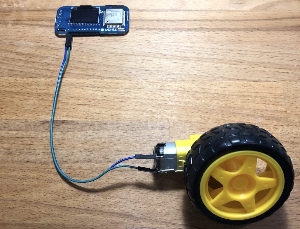 Now, if you apply current to 0 and 1 of obniz, the motor will turn.