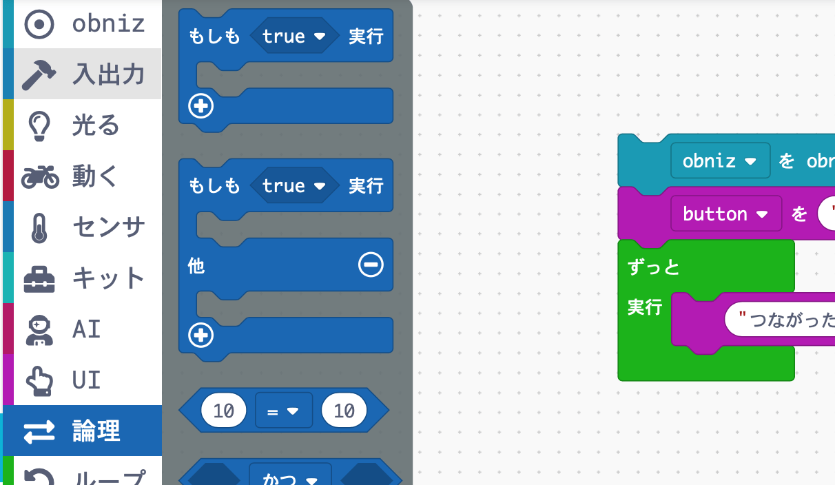 This time, let's display a button in the program's screen and link the button and obniz together!