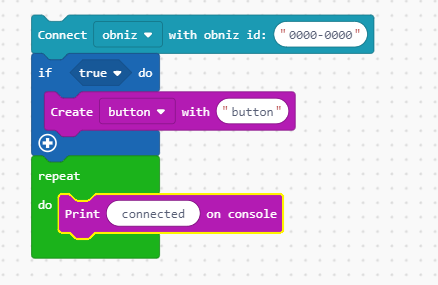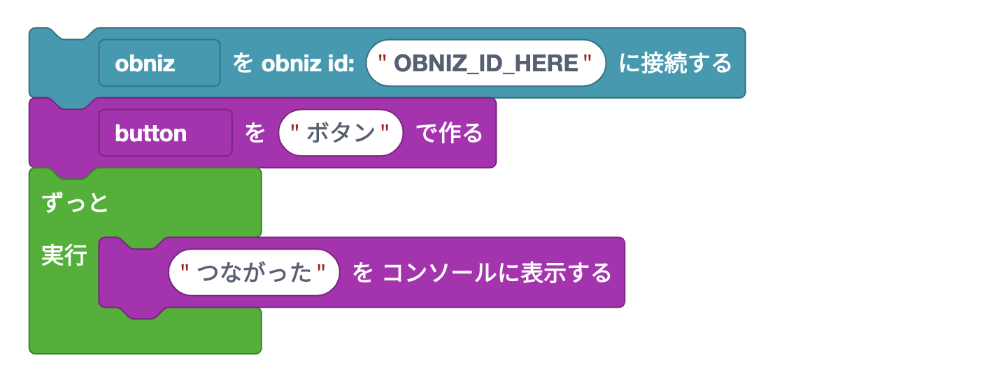 Let's put this in after obniz is connected and put the part to add the button inside.