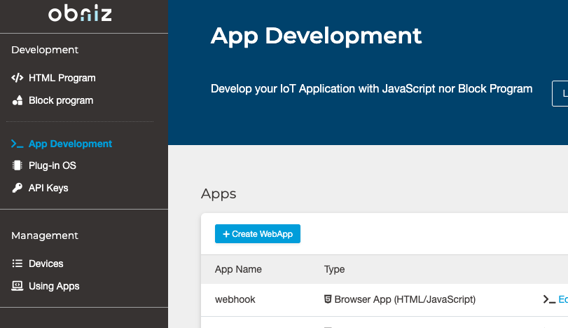 From app development, select create app.