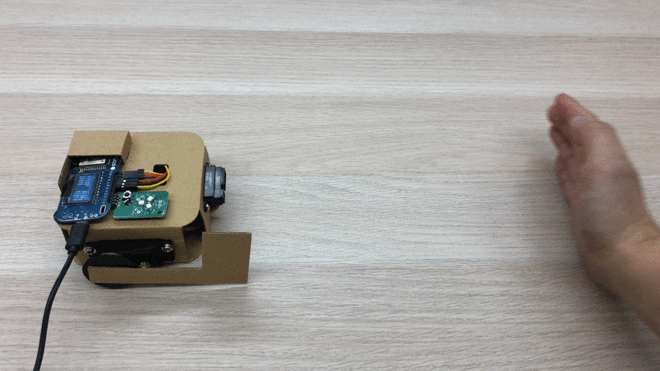If you run this program, the flag will rise when you bring your hand close to it, and the flag will drop when you release it.
