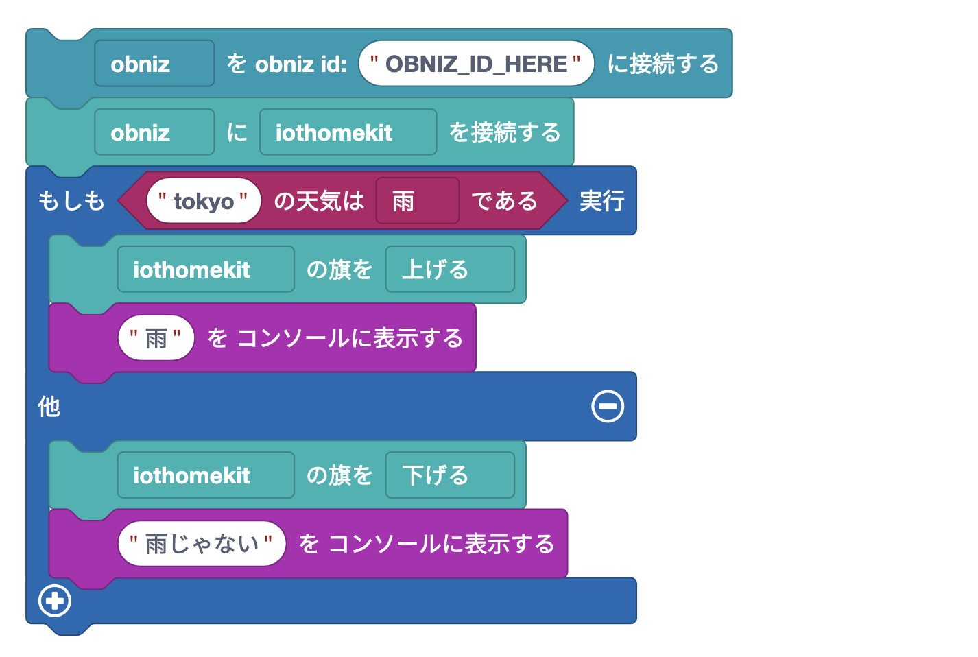 If you can connect and the kit can be connected, use the block to separate the programs depending on whether it is raining or not.