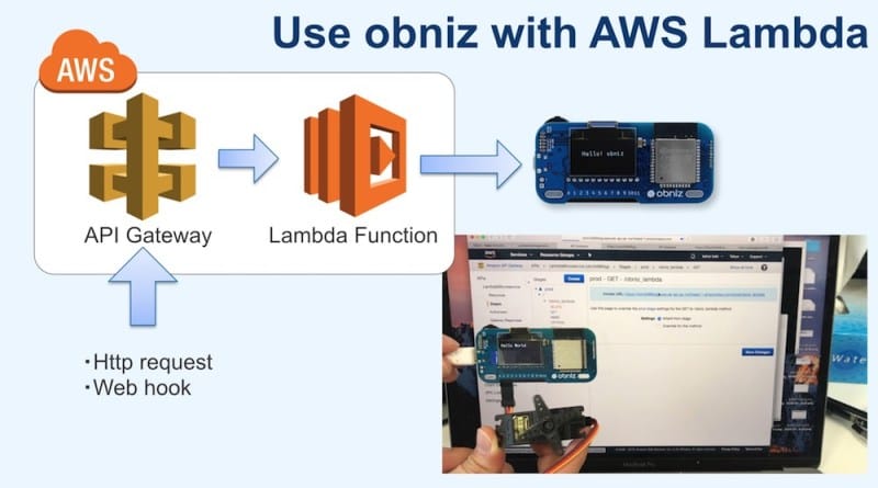 If you click on the GET button, the lambda is called, so you can click on it and obniz will start working