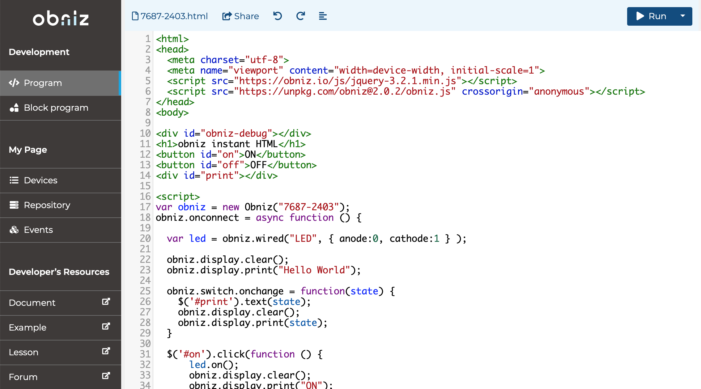 So, by entering the ID of the device you purchased, you will get a It opens the HTML. You can also run the sample code without editing anything by just running it.