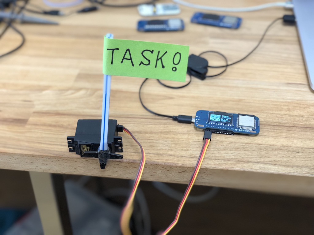 Attach the flag to the servo motor and connect it to the obniz.