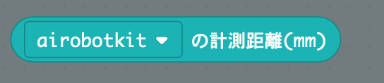ロボットからこの距離センサーを使って測った距離はこの「計測距離(mm)」ブロックで知ることができます。