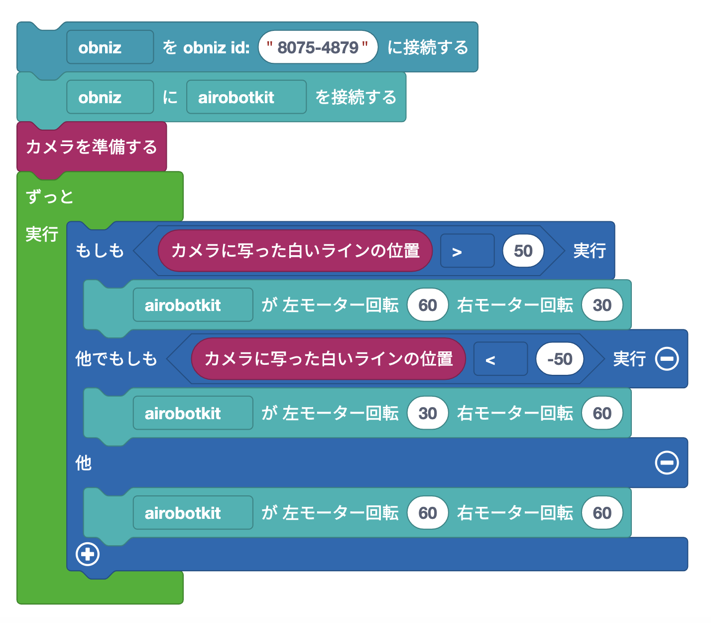 「白い線」をカメラの中からみつけて、その位置が分かるブロックがあります。