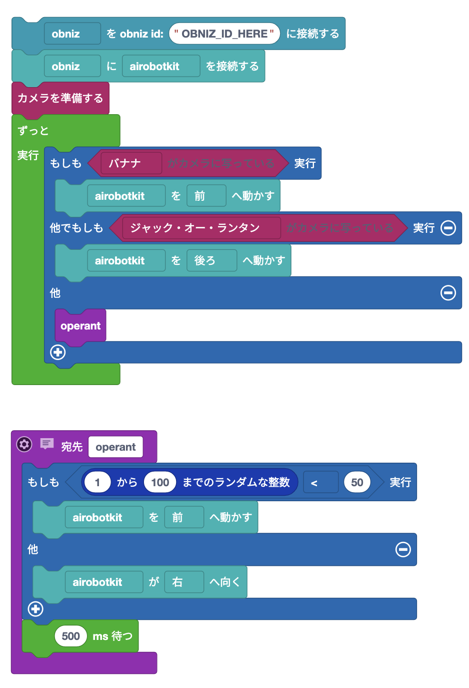 operant関数にオペラント行動のプログラムを入れるとして、このちいさなoperantブロックをバナナもかぼちゃのおばけも見つけられなかった時に入れてみましょう。