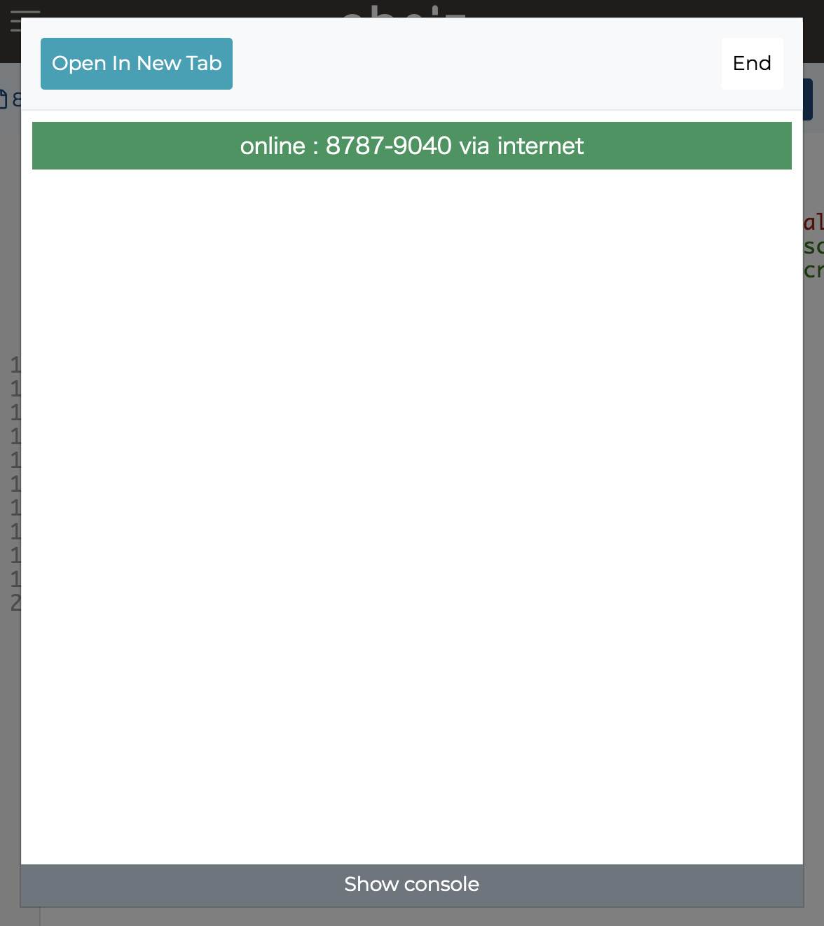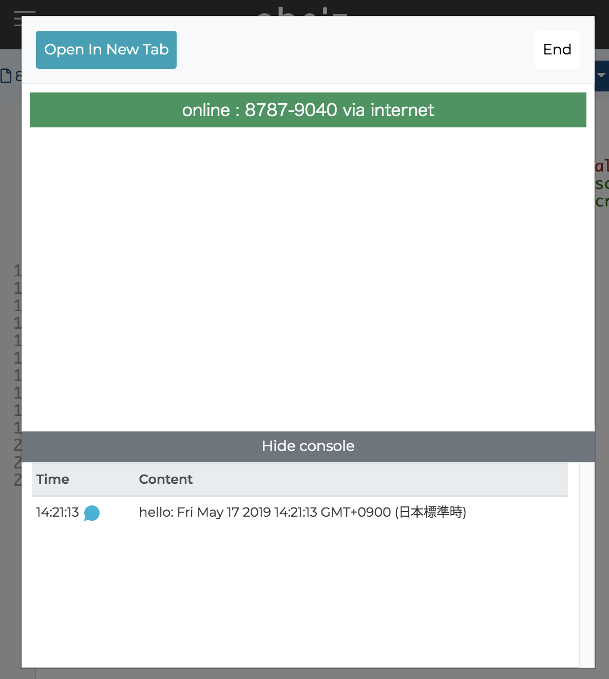 画面の下にはShow consoleボタンがあります。こちらを押すとコンソール画面を見ることができます。