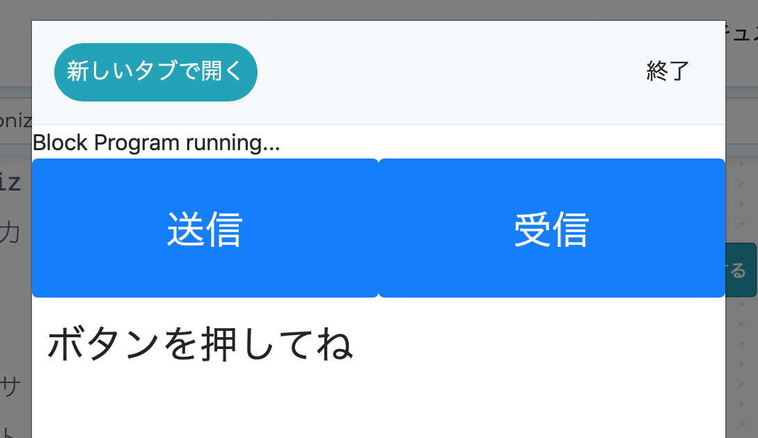 このプログラムを動かして、ボタンを押して受信まちにしましょう。