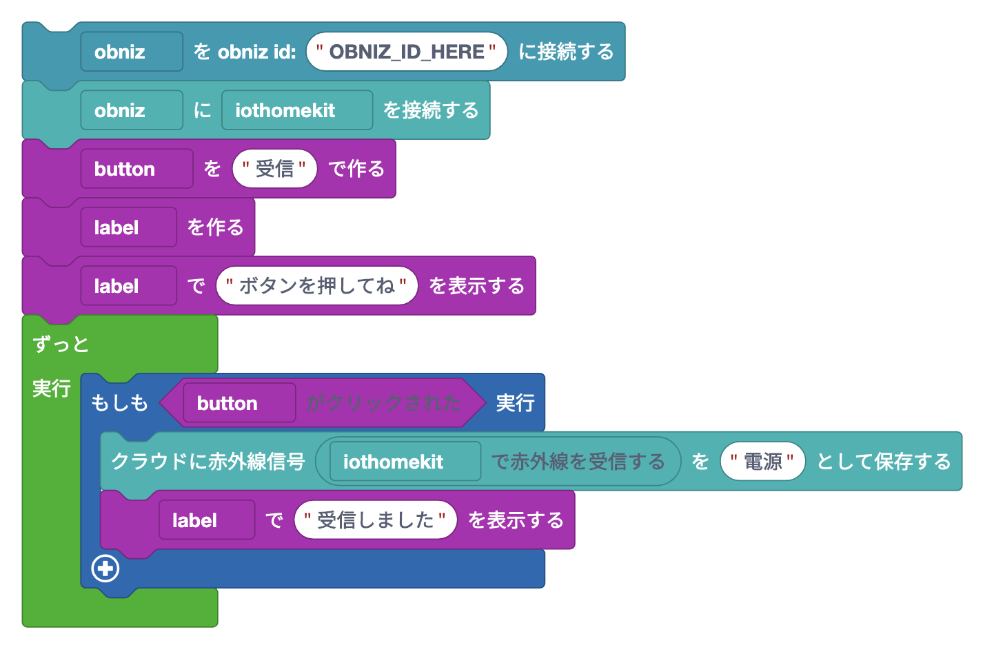 このブロックを赤外線を送信するためのブロックにつけることで送信ができるようになります。