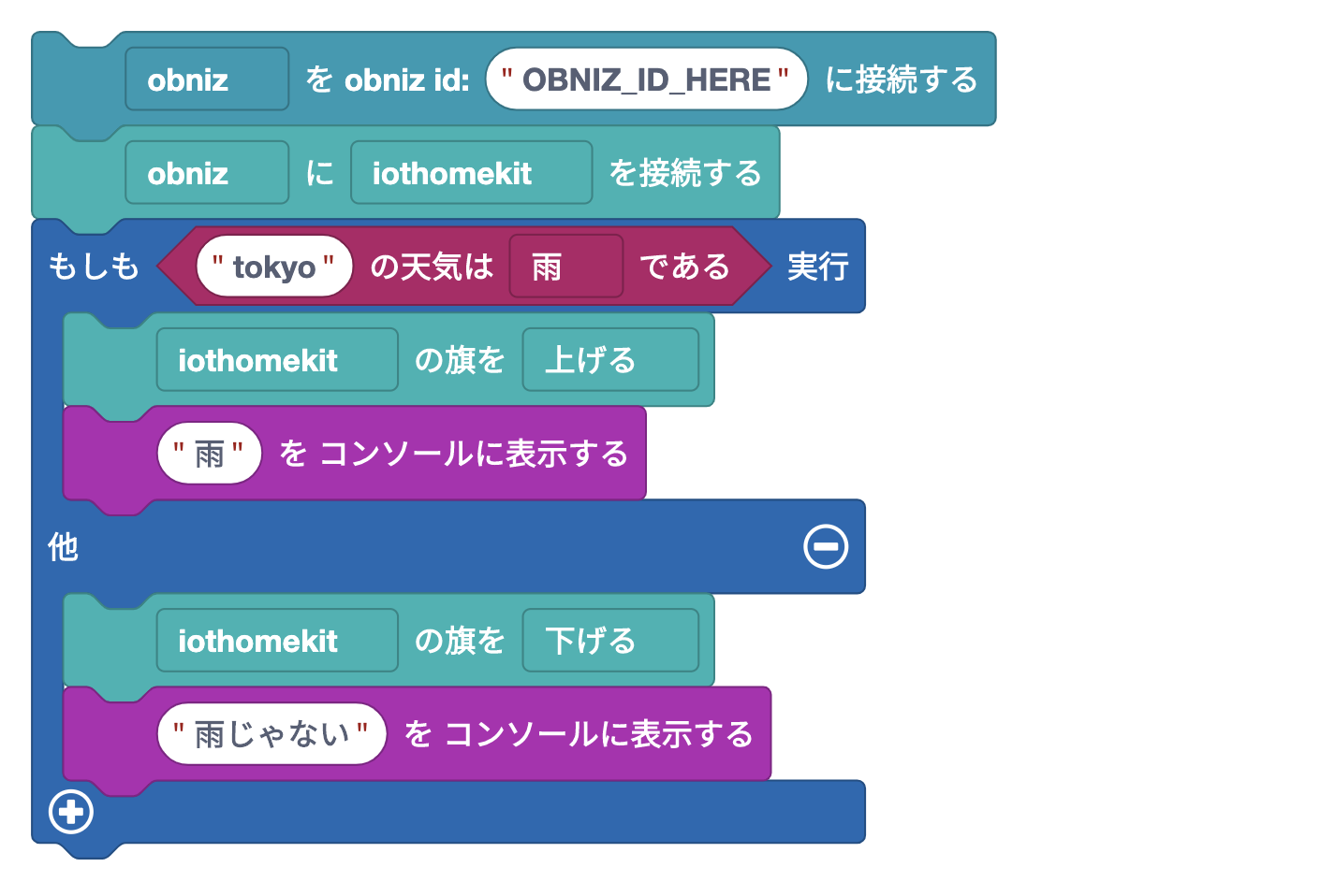 前回の天気によって旗が動くプログラムを毎朝6時に動かせば、