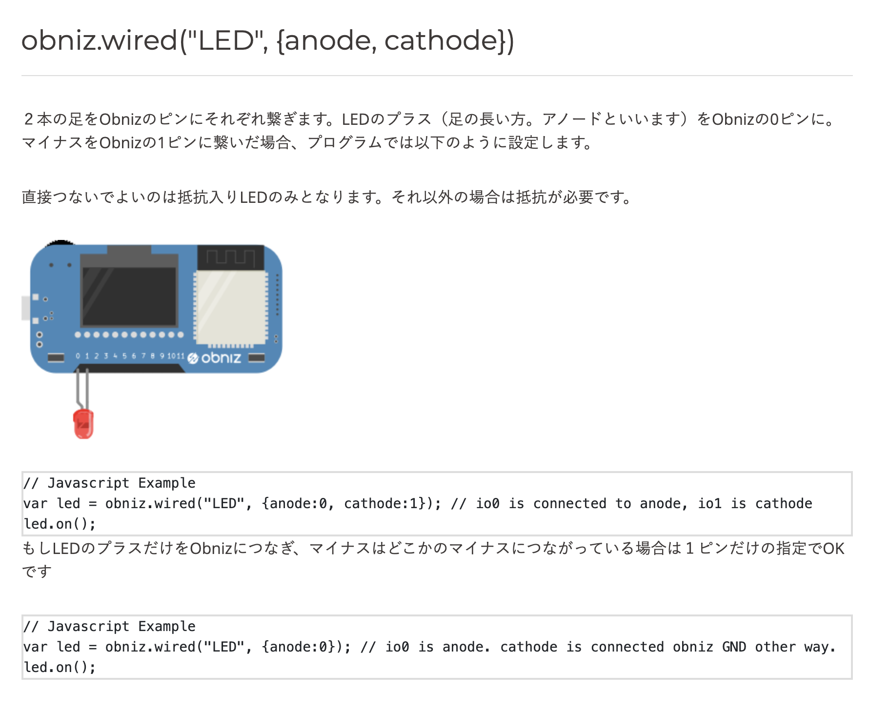 つなぎ方はobniz Boardとの接続方法が紹介されている場合が多いです。