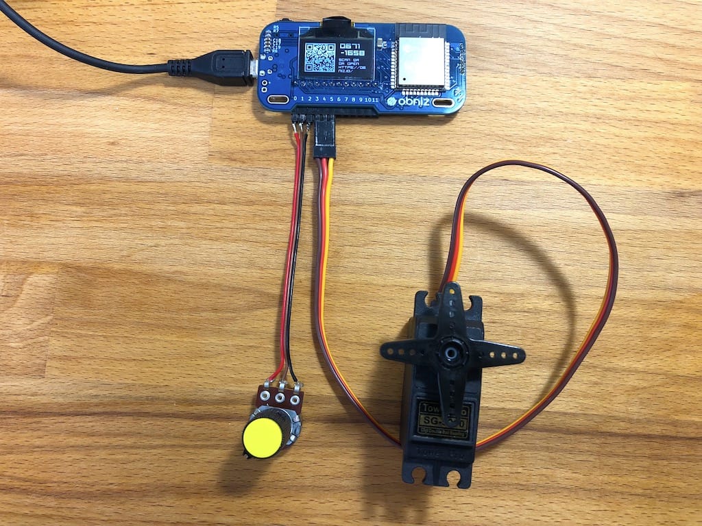 obnizを介して、ボリュームとサーボモーターを連動させてみます。