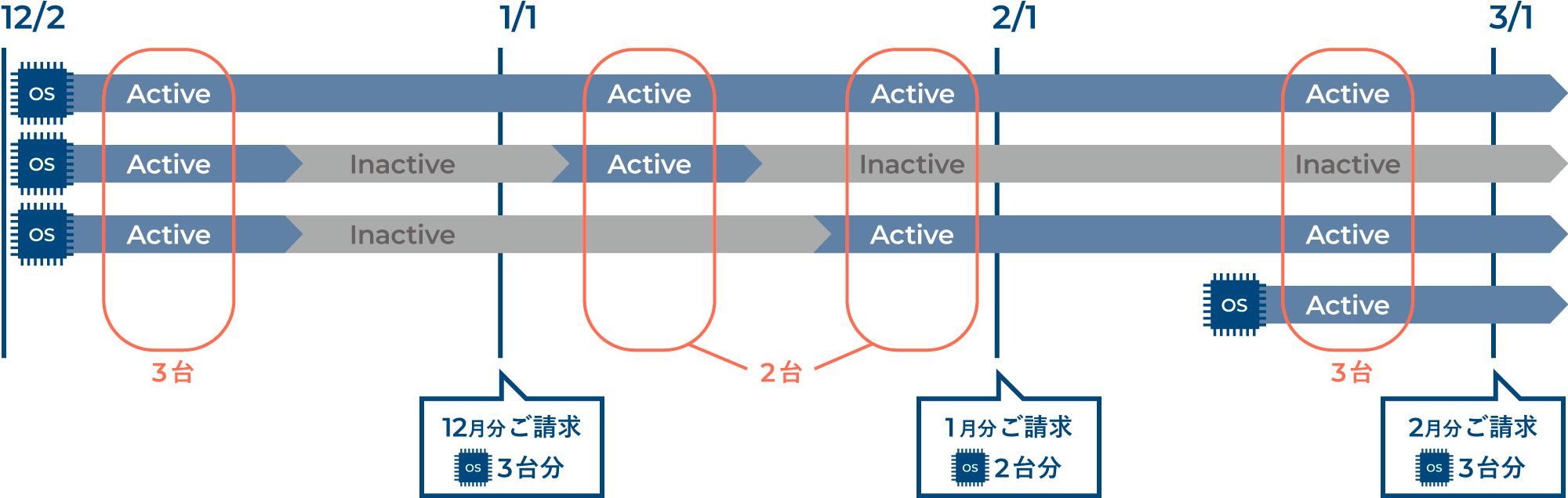 Inactiveの状態の時は、請求対象にはなりません。 - プランとデバイスにより、利用料金が異なります。料金については料金体系をご確認ください。