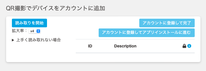 - QRコードをスマートフォンなどでスキャンし1台ずつ登録する