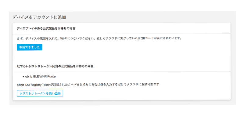 デバイスをアカウントに追加ページでは、始める上で必要な手順が表示されます。