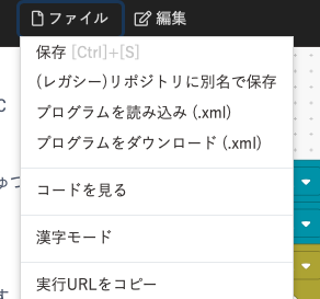 ブロックプログラムに登場する漢字をひらがなやカタカナに切り替えることができます。