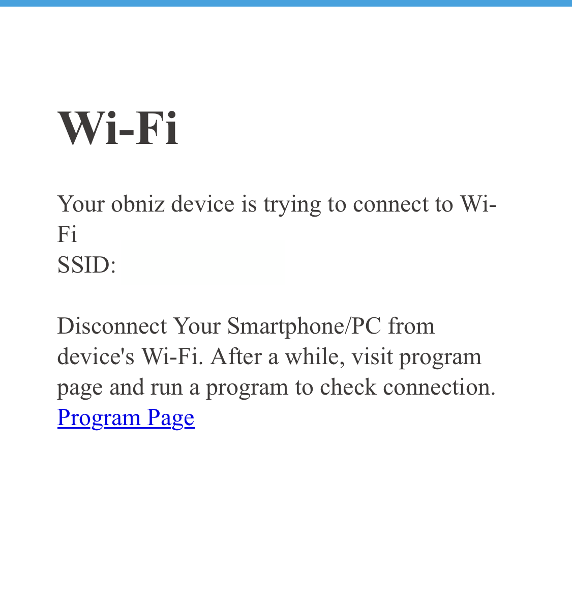 接続完了 | 正常にobnizクラウドに接続できた状態(設定完了) |