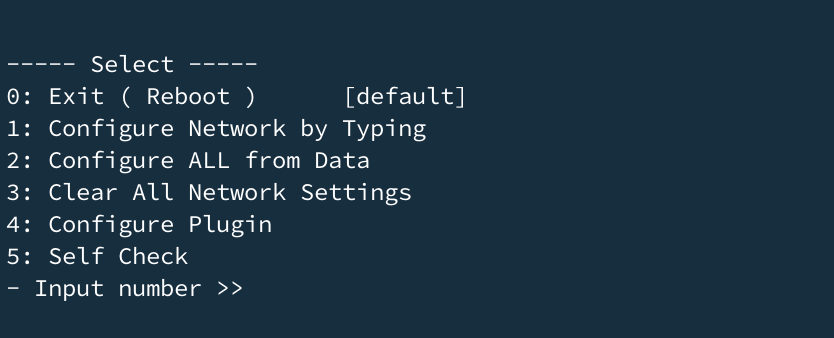 | 0: Exit ( Reboot ) | 3.0.0 | ただ再起動します。何も数字を入れずにエンターを押すとこちらが選択されます。 |