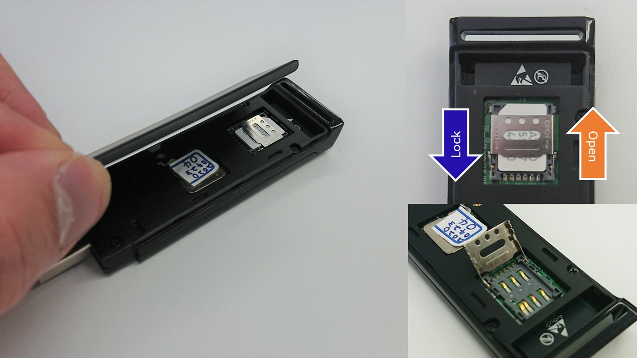 裏面カバーを外すと、金具で固定する形式のSIMカードスロットが確認できます。