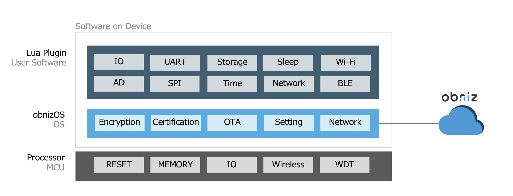 By default, obniz devices only contain the OS and are operated remotely from a server via the SDK and API.